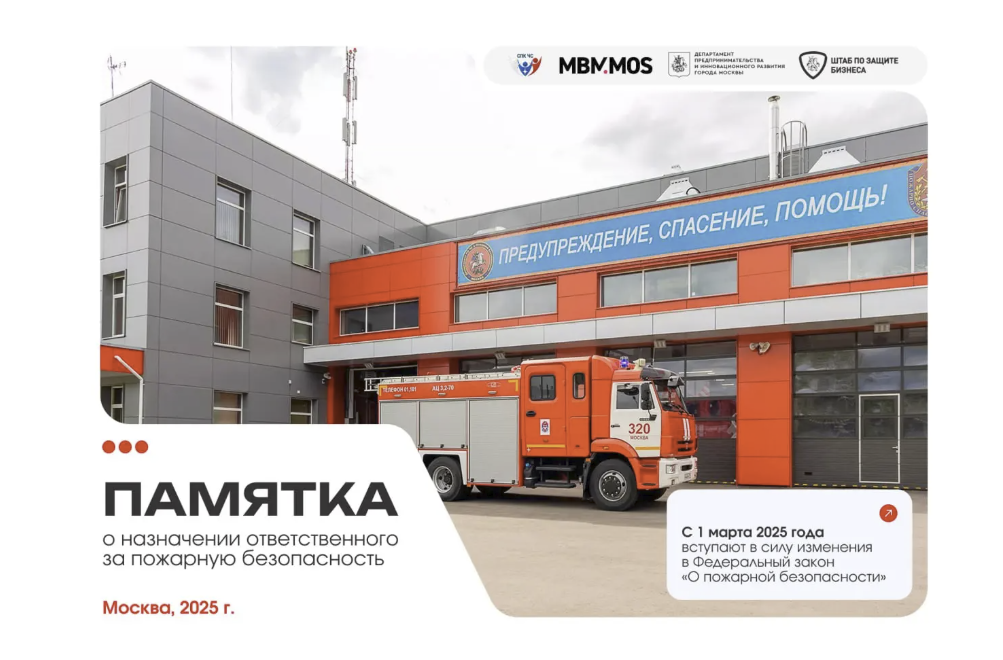 В связи с вступлением в силу с 1 марта 2025 года изменений в Федеральный закон «О пожарной безопасности» Советом совместно со Штабом по защите бизнеса в городе Москве разработана информационная памятка «О назначении ответственного за пожарную безопасность».